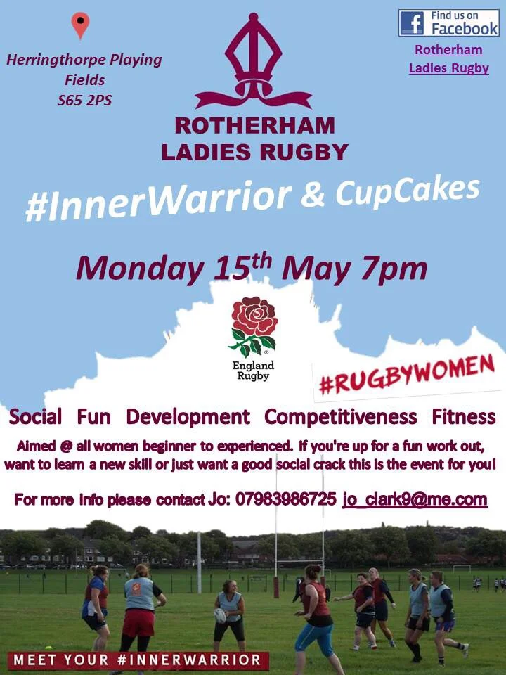 Rotherham Phoenix Ladies are hosting a free rugby and cupcakes Inner Warrior event at 7pm on Monday 15th May on Herringthorpe Playing Fields.