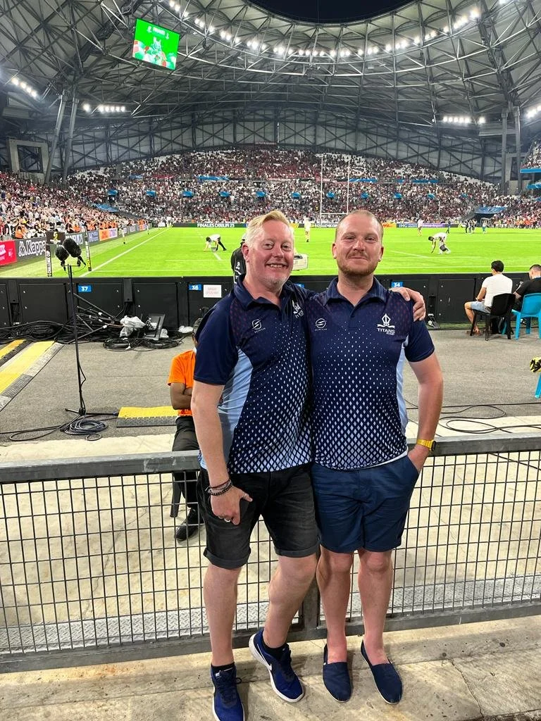 Gary can be seen pictured with his fellow Titan Andy in Marseille for the European rugby weekend finals.