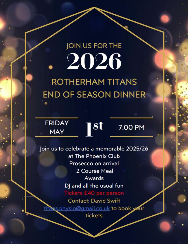 This year’s End of Season Dinner will take place on Friday 1st of May at the Phoenix Sports Club, Brinsworth.